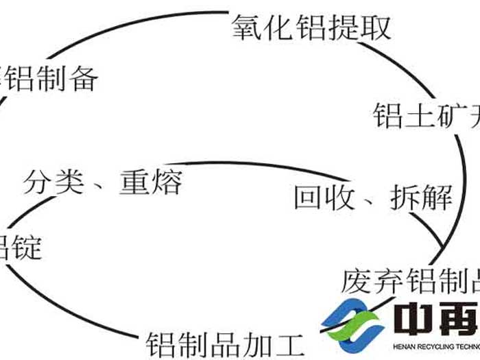 鋁的生產(chǎn)-消費(fèi)-回收-再生利用的循環(huán),需要對以下幾方面的基本條件進(jìn)行評估,即鋁的可再生性、資源優(yōu)勢、環(huán)境效益。在工業(yè)常用的金屬材料中,鋁的可回收性是較好的。這是由于鋁具有良好的抗腐蝕性能。除了某些鋁制化工容器與裝置外,鋁制產(chǎn)品在其使用期間幾乎不被腐蝕。如建筑鋁門窗、高壓輸配電線、交通運(yùn)輸工具上的鋁結(jié)構(gòu)與零配件、鋁制易拉罐等在其服役期間僅發(fā)生極少量的腐蝕損失,可回收率極高。在先經(jīng)過廢鋁破碎機(jī)粉碎后,再重復(fù)熔煉鑄造過程中,僅產(chǎn)生4%~8%的損耗(含燒損與機(jī)械損耗)。與其他常用金屬材料比較,鋁的循環(huán)再利用的另一個顯著優(yōu)勢是,再生后的材料品質(zhì)較原生鋁幾乎不會減少。因此,鋁又被稱作可持續(xù)利用的“綠色金屬材料”。